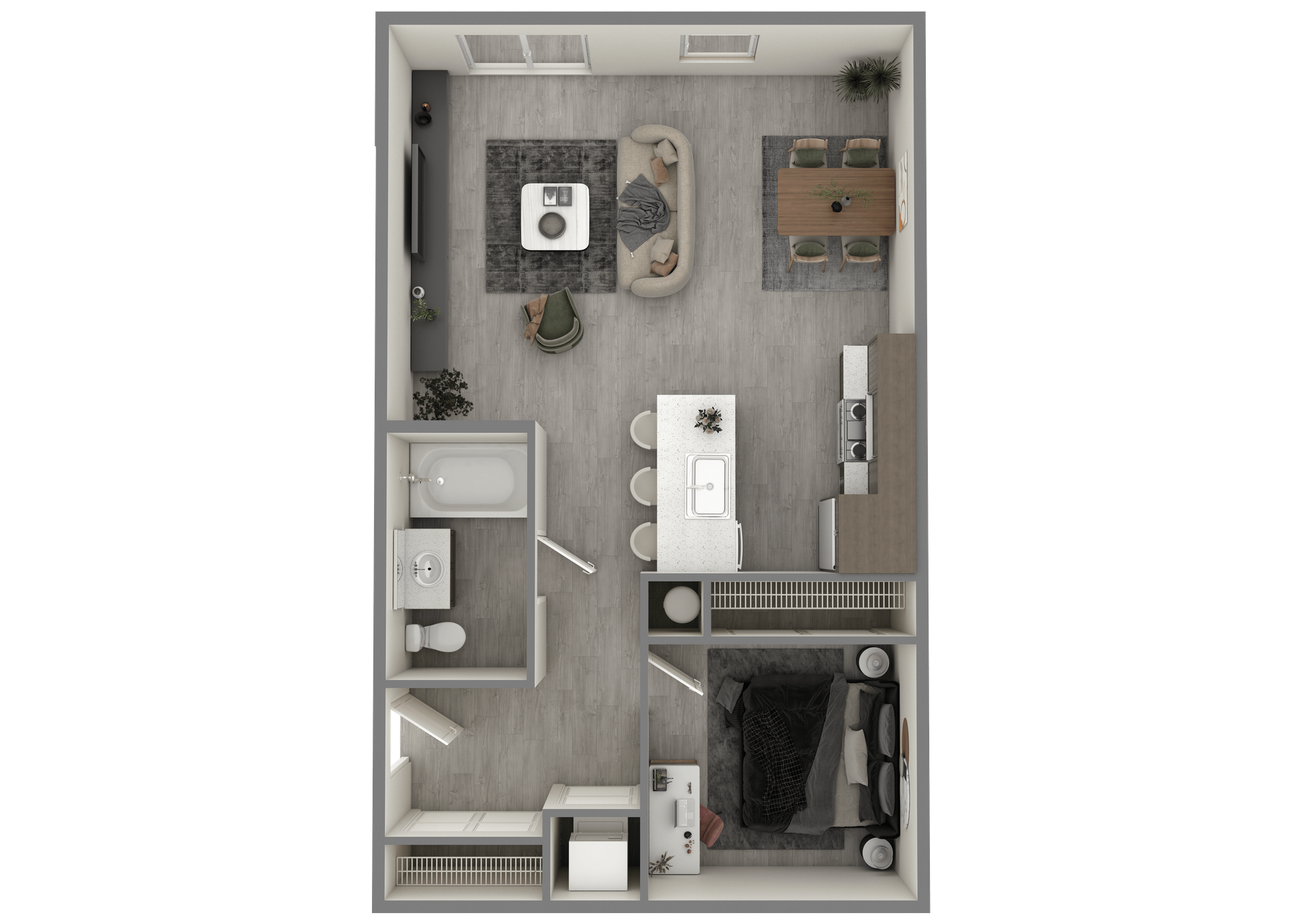 Second Floor 1 BD, 1 Bath Unit with Large Windows & Jukliu