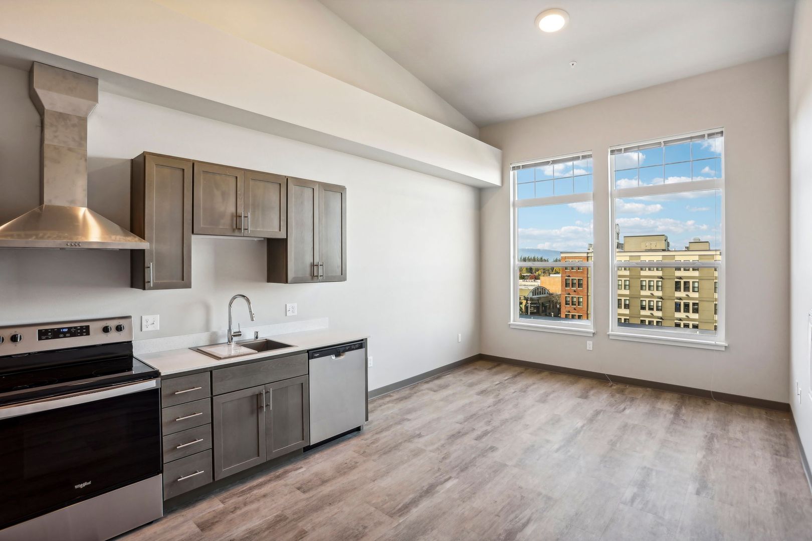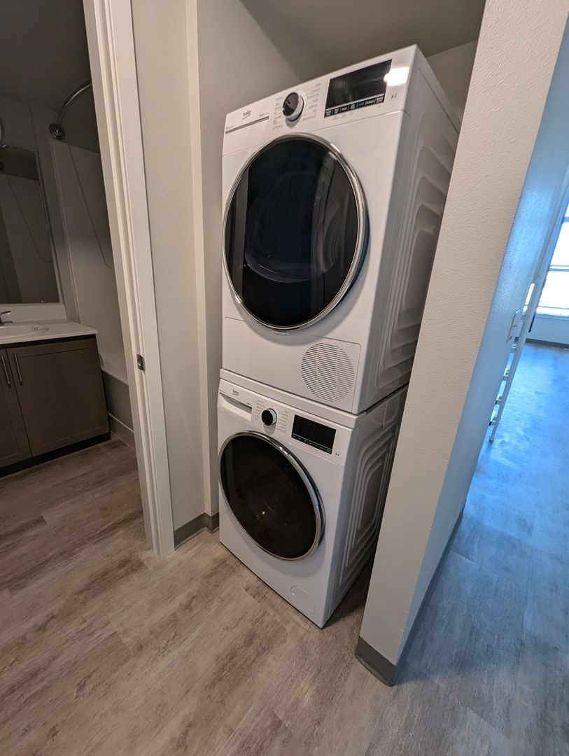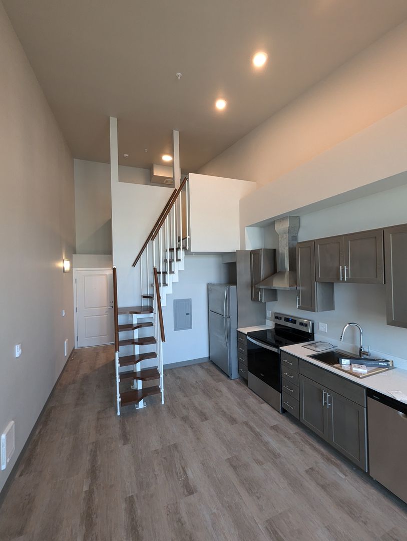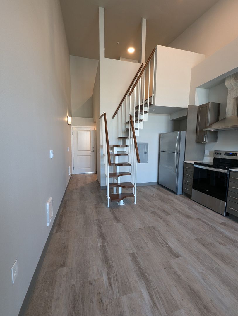 Uncompromising quality. This premire, third floor studio/one bath with views of Fairhaven & Bellingham Bay boasts large windows flooded with natural light, flowing layout, fully equiped stainless-steel kitchen appliance packages, quartz counter-tops, stack washer/dryer and hand selected finishes, lighting and designer colors. This unit has an additional 91 sq. ft. loft.