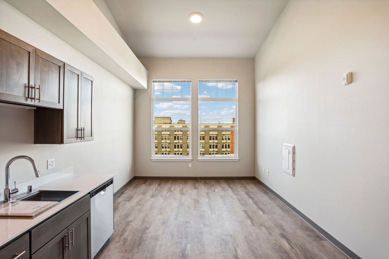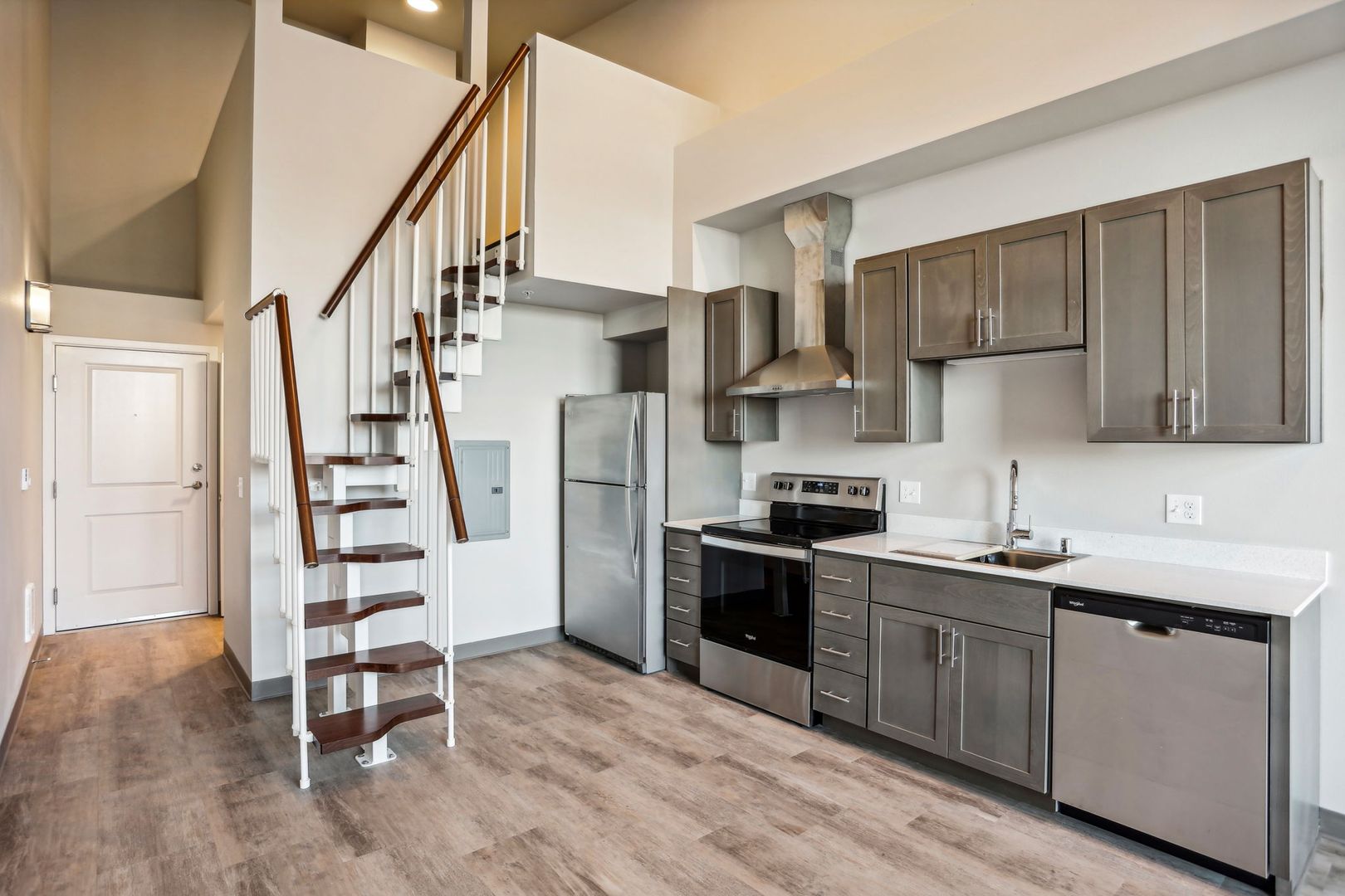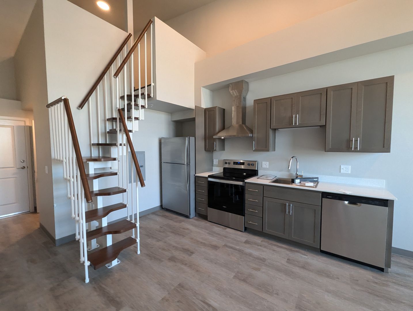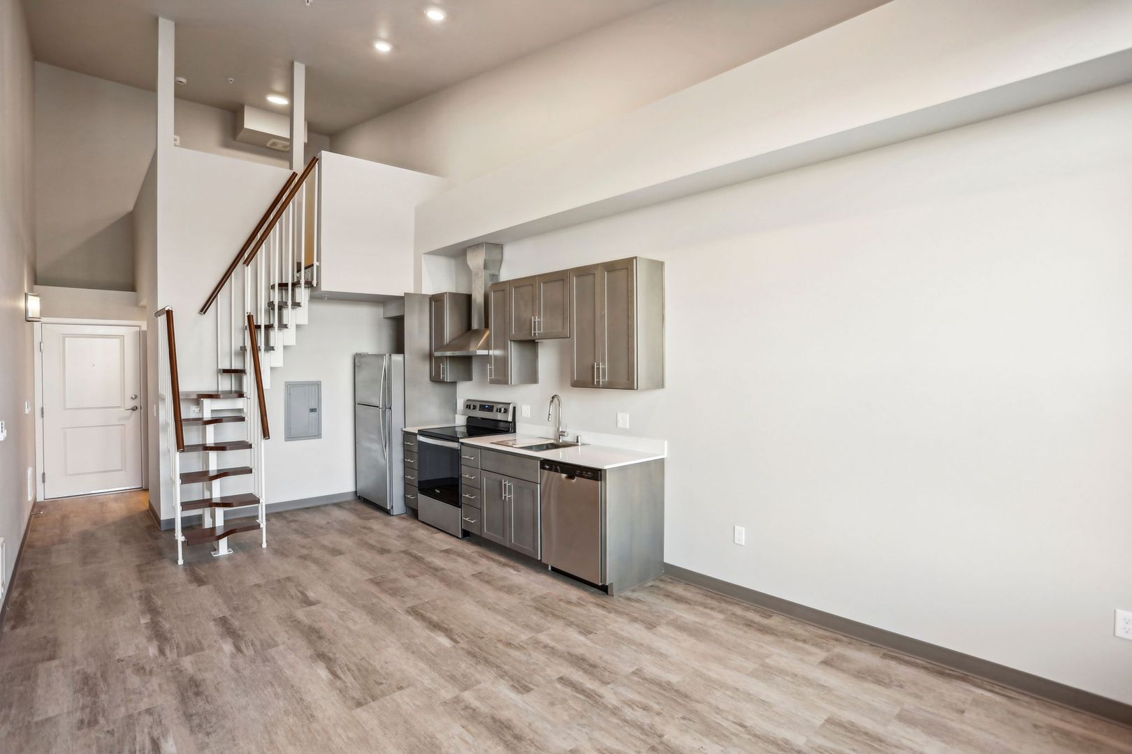 Uncompromising quality. This premire, third floor studio/one bath with views of Fairhaven & Bellingham Bay boasts large windows flooded with natural light, flowing layout, fully equiped stainless-steel kitchen appliance packages, quartz counter-tops, stack washer/dryer and hand selected finishes, lighting and designer colors. This unit has an additional 91 sq. ft. loft.